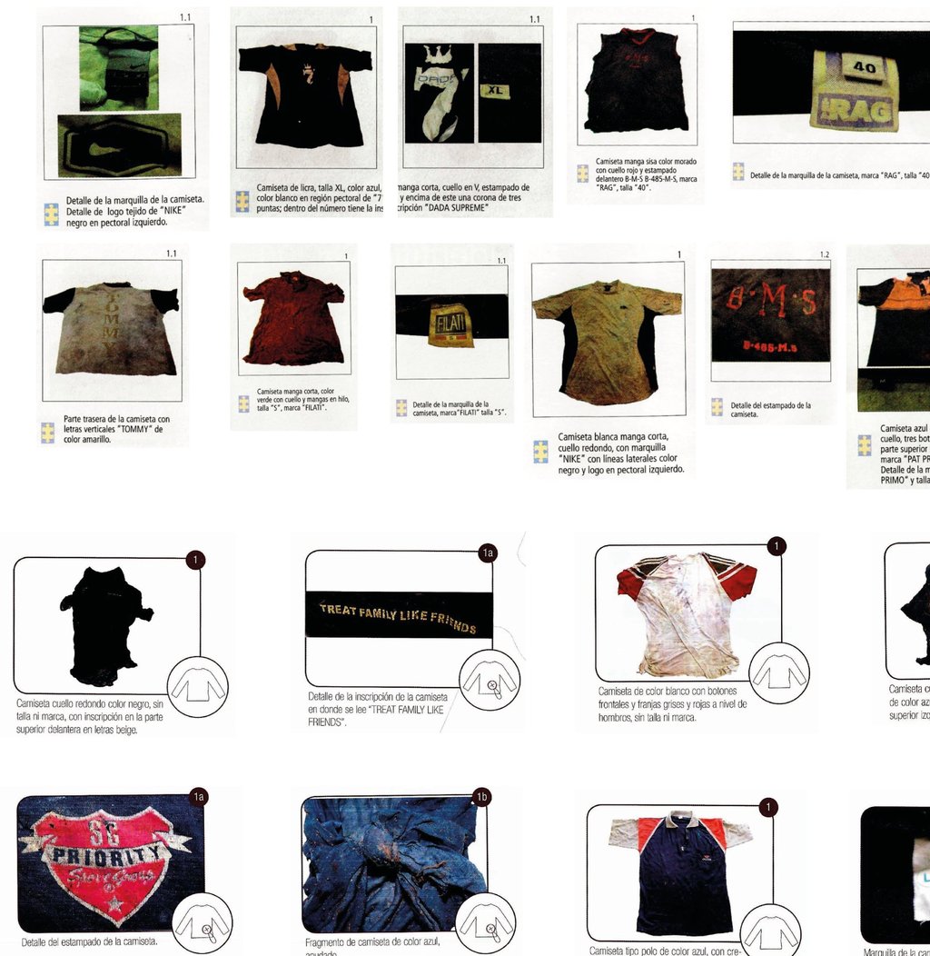 Leer y organizar como forma de escucha. A partir de las prendas recopiladas por la Fiscalia General de la Nación en la revista Rastros se establecen unas estructuras de visualización.